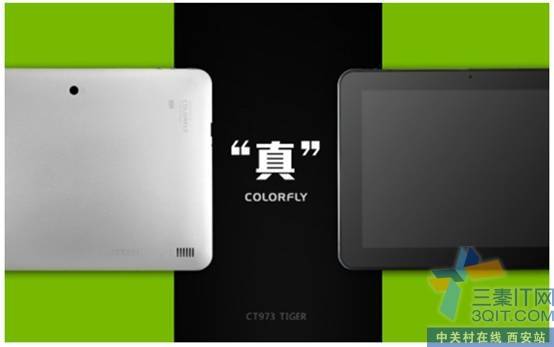 Colorfly CT973 Tiger整体外观简约、时尚。该机搭载9.7英寸分辨率1024*768多点触控IPS屏幕,屏幕可视角度达到178度,丰富的色彩和细致的画面显示,带给用户不同一般的视觉体验。