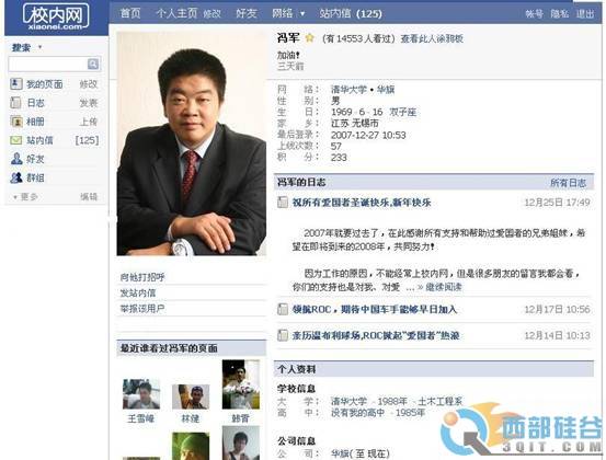 “目前,校内网已经开通国内大学3000所,海外大学1000所,高中8000所,覆盖了国内80%的大学市场,拥有两届大学毕业生,众多的大学生及大学毕业生都是潜在的白领用户,其中将有70%—80%的人毕业后进入大型公司企业成为白领,转入校内网白领网络,并将很大程度的带动身边的白领参加进来”千橡集团CEO陈一舟说。